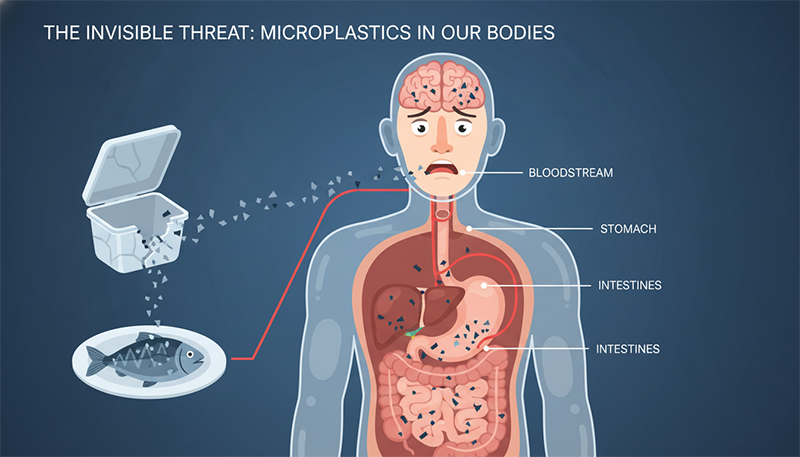 Vi nhựa (Microplastics) với kích thước siêu nhỏ đã vượt qua các rào cản sinh học để xâm nhập vào máu, nhau thai và thậm chí là não bộ. Các hạt này gây ra phản ứng viêm, stress oxy hóa tế bào. Việc tích tụ sinh học này diễn ra hàng ngày qua muối ăn, hải sản và nước uống đóng chai, tạo ra những rủi ro sức khỏe chưa từng có trong lịch sử loài người.
