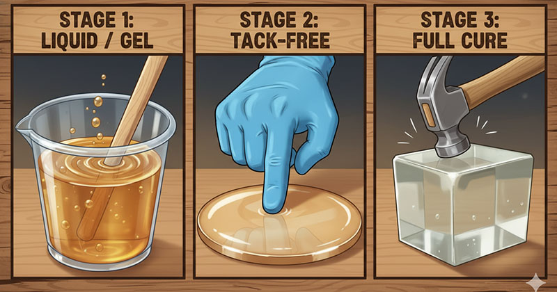 Thời gian đông cứng epoxy gồm những giai đoạn nào?