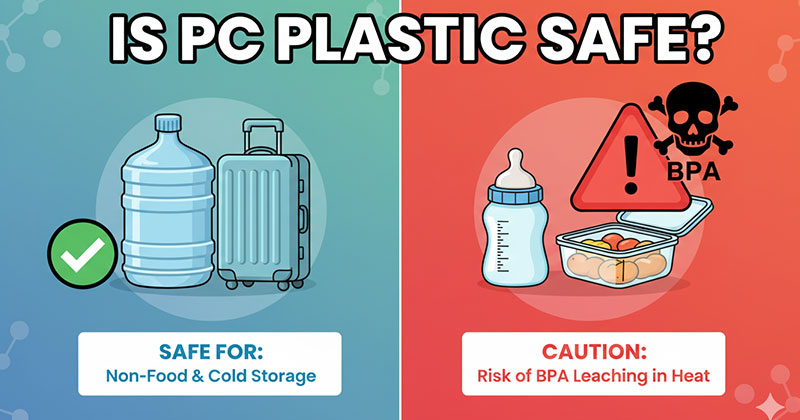 Giới hạn của phương pháp này: mã số 7 không phân biệt được PC với Tritan, PETG, ABS hay các nhựa kỹ thuật khác cùng nhóm. Đây là phương pháp loại trừ, không phải xác nhận tuyệt đối. Nếu sản phẩm mang mã 1 (PET), 2 (HDPE), 5 (PP) hoặc 3 (PVC) – chắc chắn không phải PC. Nếu mang mã 7 kèm chữ “PC” – xác nhận chắc chắn là PC.