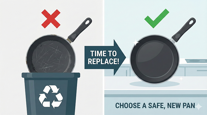 Nguyên tắc an toàn: Nếu nghi ngờ → Thay mới. Sức khỏe gia đình > tiền chảo. FDA xác nhận PTFE ăn nhầm “không nguy hiểm nghiêm trọng”, nhưng kim loại lõi và vi nhựa tích lũy dài hạn mới là vấn đề thực sự.