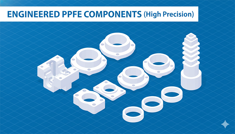 • Ổ trượt và bạc trượt tự bôi trơn: Tận dụng hệ số ma sát cực thấp của Teflon để tạo ổ trượt không cần dầu mỡ. Ứng dụng trong máy thực phẩm, dệt, y tế.