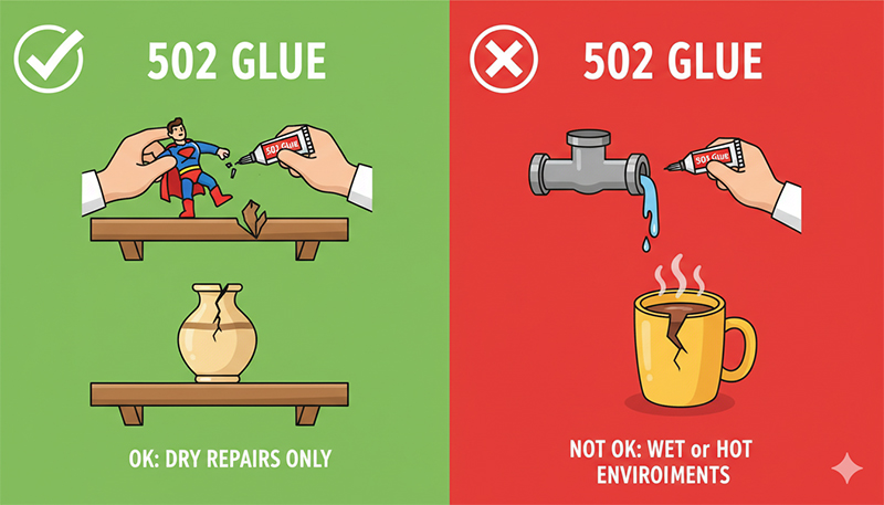 Trường hợp nào keo 502 KHÔNG nên dùng?