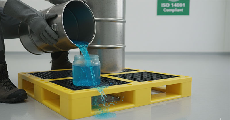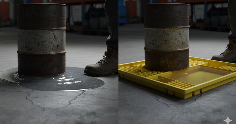 Khay chống tràn hoá chất mang lại những lợi ích gì? Phân tích đầy đủ về an toàn lao động, bảo vệ môi trường, tuân thủ pháp luật và chi phí – cùng hậu quả thực tế nếu không dùng.