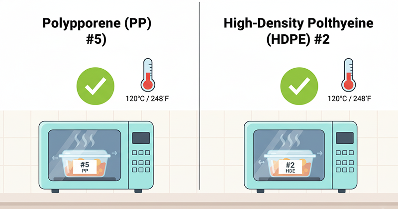 | Số 2 | HDPE | 110°C | Khá an toàn | Hâm ấm dưới 3 phút |