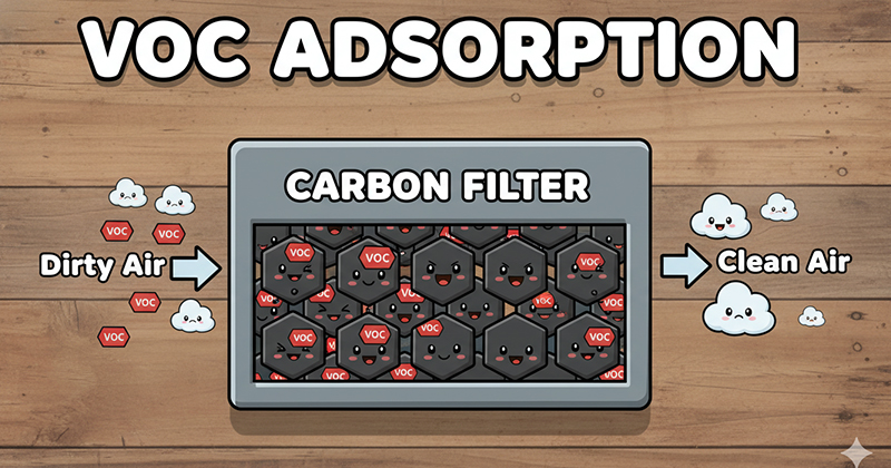 Cơ chế xử lý: phụ thuộc nồng độ và loại VOC cụ thể. Nồng độ cao (> 5.000 ppm): đốt nhiệt trực tiếp (thermal oxidizer, RTO – regenerative thermal oxidizer) hoặc thu hồi bằng hấp phụ than hoạt tính rồi giải hấp để tái sử dụng. Nồng độ thấp (< 500 ppm): hấp phụ than hoạt tính hoặc zeolite. Scrubber ướt nhựa PP không phù hợp cho VOC không phân cực (toluene, xylene) vì VOC này không hòa tan vào nước – nhưng phù hợp với VOC phân cực như methanol, ethanol, acetic acid.