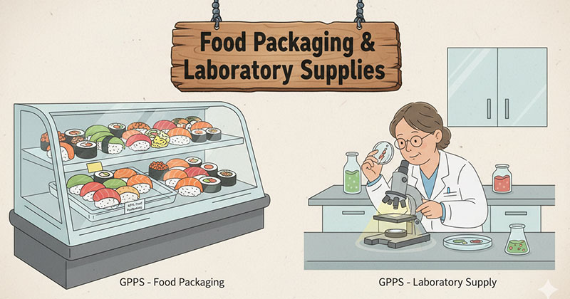 Y tế và phòng thí nghiệm: Nhờ độ trong suốt để quan sát mẫu vật, GPPS được dùng làm đĩa petri, ống nghiệm và các khay nuôi cấy tế bào dùng một lần.