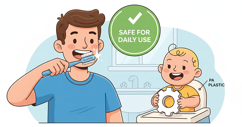 Lưu ý quan trọng: khi mua đồ dùng trẻ em làm từ nhựa PA, cần kiểm tra rõ chứng nhận food-grade và FDA trên bao bì – tránh nhầm với PA tái sinh hoặc PA grade kỹ thuật không được kiểm định cho tiếp xúc thực phẩm.