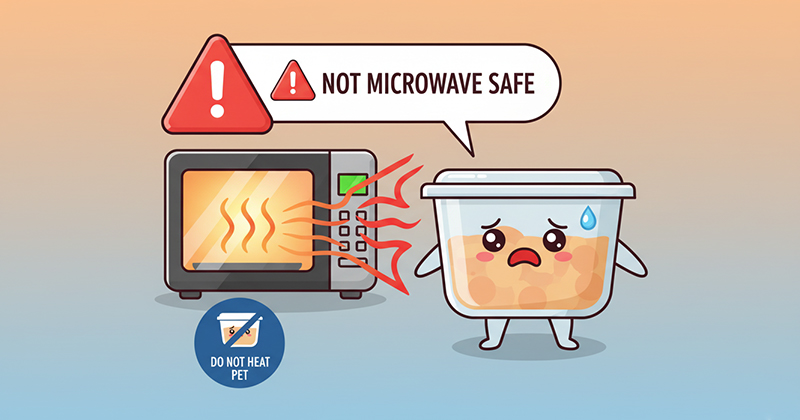 Nhiệt độ trong lò vi sóng có thể đạt 100°C hoặc cao hơn tại các điểm nóng cục bộ, vượt xa khả năng chịu nhiệt của PET. Điều này có thể gây biến dạng nghiêm trọng và làm PET phát sinh các chất không mong muốn.