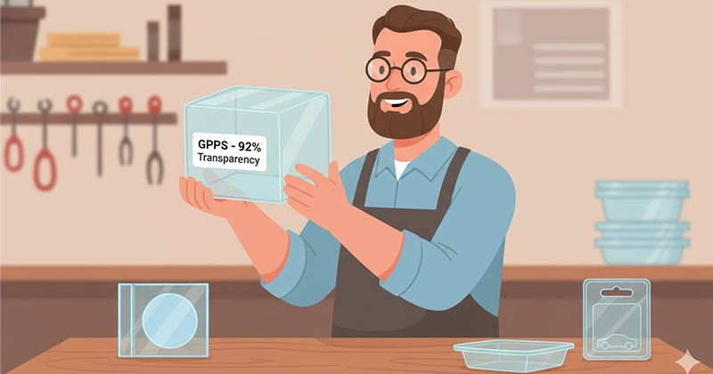 • Độ trong suốt tự nhiên: Do không có các vùng tinh thể làm cản trở ánh sáng, nhựa PS có độ truyền sáng lên tới 88–92%, gần tương đương với thủy tinh.