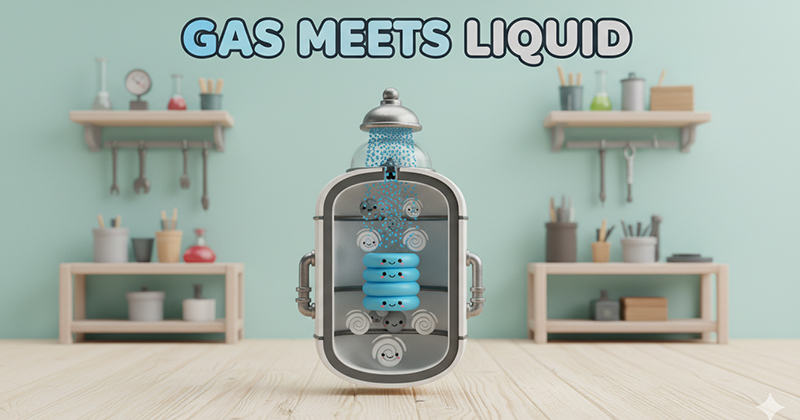 Ba cơ chế làm sạch đồng thời trong Scrubber ướt: hòa tan khí vào dung dịch (absorption), va chạm và bám hạt bụi vào giọt lỏng (impaction) và phản ứng hóa học trung hòa axit–bazơ (chemical neutralization). Thiết bị điển hình: tháp đệm, tháp phun, Venturi scrubber và tháp đĩa.