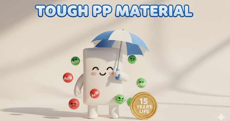 Tháp hấp thụ ướt tiếp xúc liên tục với pha khí ăn mòn và dung dịch kiềm mạnh. Nhựa PP kháng hoá chất bẩm sinh với HCl, NaOH và H2SO4 – không phụ thuộc lớp phủ bề mặt, không cần sơn định kỳ và tuổi thọ 15–20 năm. Đây là lý do tháp hấp thụ nhựa PP là thiết bị tiêu chuẩn cho ngành công nghiệp tại Việt Nam.