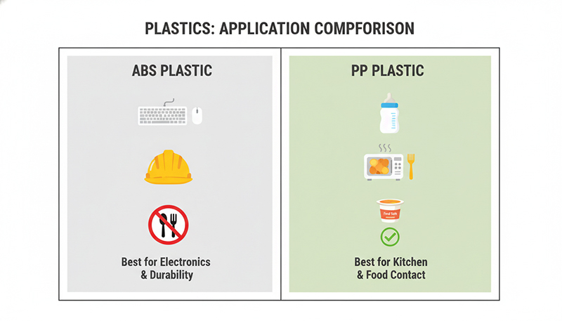 | Ứng dụng chính | Điện tử, ô tô, đồ chơi, nội thất | Thực phẩm, y tế, bồn bể, ống nước |