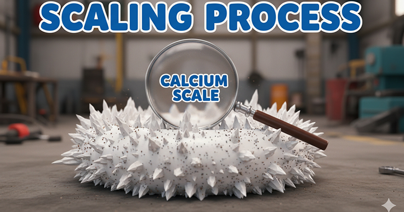 Muối canxi carbonat (CaCO3) hình thành khi dùng nước cứng chứa Ca2+ và dung dịch có độ pH cao. CaCO3 kết tủa ở pH > 8, tạo cặn vôi trắng dày, cứng hơn CaSO4, rất khó tẩy. Scrubber xử lý H2S dùng NaOH thường gặp vấn đề này nếu nước bổ sung có độ cứng cao trên 200 ppm CaCO3.