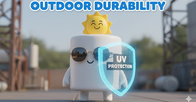 Ánh nắng mặt trời chứa các tia UV có năng lượng cao, có khả năng bẻ gãy các liên kết hóa học trong nhựa, gây ra hiện tượng lão hóa bề mặt. Tháp nhựa PP lắp đặt ngoài trời nếu không có biện pháp bảo vệ sẽ dễ bị bạc màu, giòn gãy và xuất hiện các vết rạn chân chim sau vài năm.