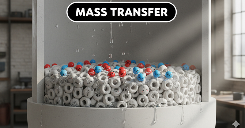 Khí thải bị buộc phải đi xuyên qua những khe hở dích dắc của lớp vật liệu đệm, tạo ra sự hỗn loạn dòng chảy để tăng diện tích va chạm. Công thức tính hiệu suất: E = ((Cin – Cout) / Cin) x 100%, trong đó chênh lệch nồng độ đầu vào và đầu ra là thước đo chất lượng.